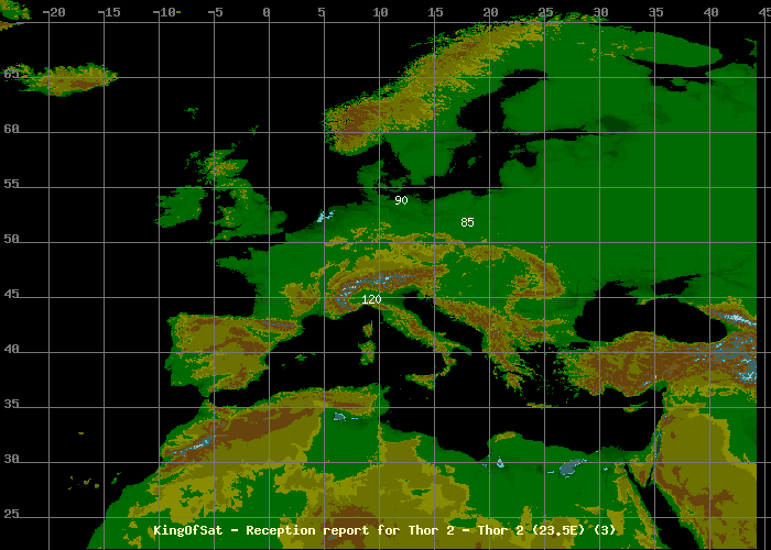Cette fonction permet d'afficher sur la carte d´Europe les diamètres d'antenne permettant la réception correcte pour un faisceau,
